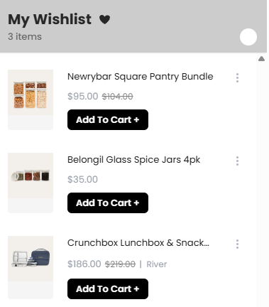 You can add items to your Wishlist in two ways: by clicking the Heart Icon located at the top right of each item, or by selecting the “Add to Wishlist” button found just below the Add to Cart button on any product page.